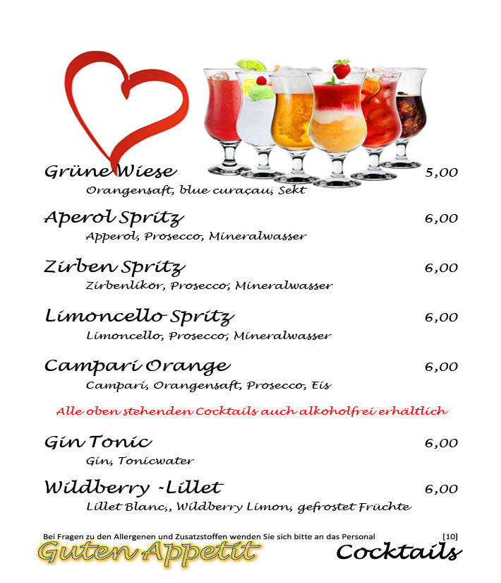Unsere Auswahl an Cocktails